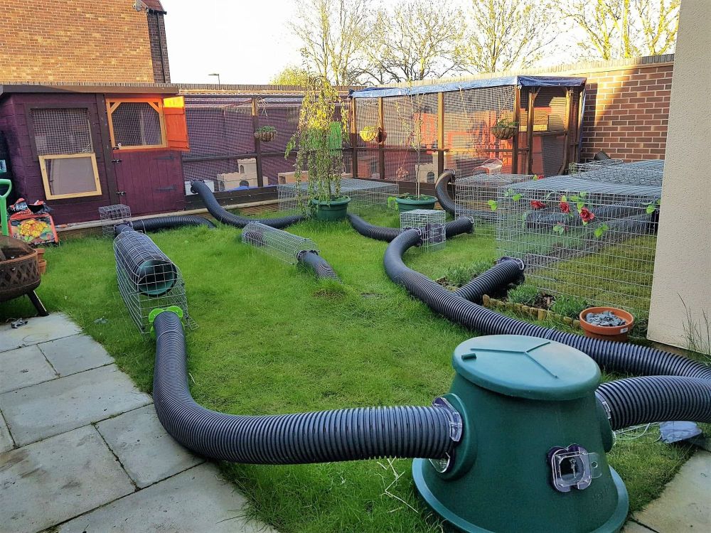 Konijnen zijn ook gek op tunnels. Je kunt deze kopen, of zelf maken van brede rechte of flexibele buizen en van kartonnen dozen met gaten erin.