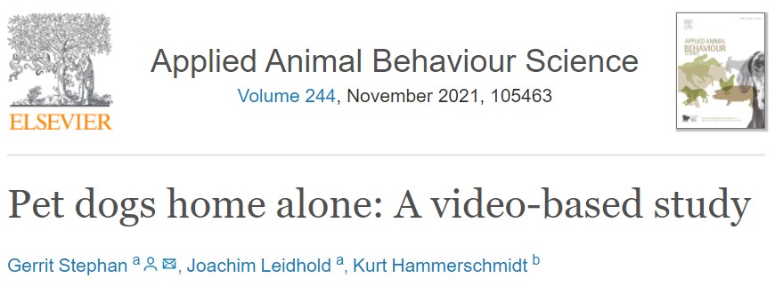 In dit onderzoek werd gekeken naar wat honden doen als ze alleen zijn. In dit onderzoek waren de honden ongeveer 4 uur alleen, en hier waren ze ook aan gewend. Het grootste deel van de tijd waren ze passief, bijvoorbeeld aan het slapen, maar 23% van de tijd zijn ze actief bezig. Honden die samenwoonden met een andere hond waren actiever, en dan vooral in het eerste uur dat de eigenaar weg was. Niet omdat ze met elkaar bezig waren, maar waarschijnlijk omdat het ze meer tijd kostte om tot rust te komen. Reuen die samenwoonden met een andere hond blaften en jankten (veel) meer. Deze studie suggereert dus dat honden niet perse kalmer zijn tijdens afwezigheid van de eigenaar als ze met andere honden samenwonen.