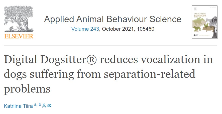 Dit onderzoek keek naar de effectiviteit van een digitale hondenoppas. Sommige honden hebben verlatingsangst als ze alleen moeten blijven, wat zich bijvoorbeeld kan uiten in blaffen, janken of dingen kapot maken. In dit onderzoek werd gekeken of een digitale hondenoppas, die een geluidsfragment van de eigenaar afspeelt als de hond veel geluid maakt, een positief effect heeft. Het blijkt dat als de digitale oppas wordt gebruikt, honden minder geluid maken, en dat ze ook minder slopen. Het kan goed zijn dat het horen van de stem van de eigenaar al een veilig gevoel geeft aan de hond. Opvallend was dat het geven van een commando (“naar je bed”) effectiever leek te zijn dan een kalmerend berichtje.